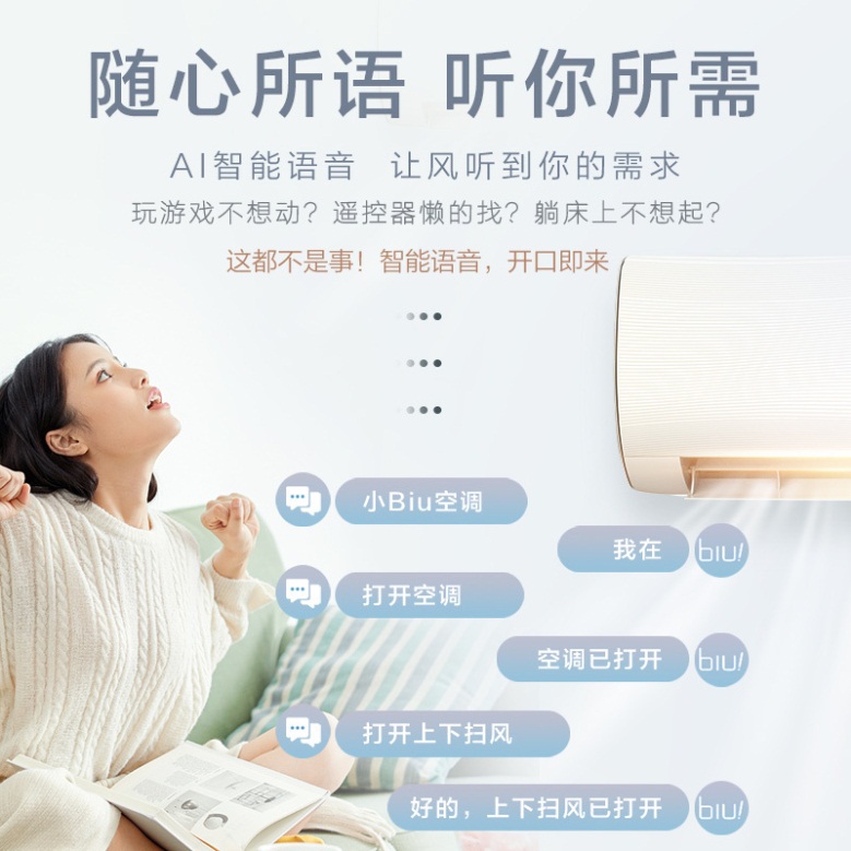 此外,小Biu空調(diào)Max搭載了AI智能語音控制技術,你只需要對它說“小Biu空調(diào)”將其喚醒,就能實現(xiàn)開機關機、模式切換、調(diào)節(jié)溫度等操作,實現(xiàn)了真正的智能語音操控。同時,小Biu空調(diào)Max采用行業(yè)一流的海立壓縮機,并具有高溫自清潔、APP遠程控制、急速冷暖等亮點功能,提供整機6年、壓縮機10年保修的服務。
