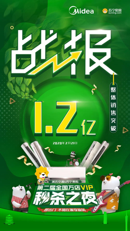 一季度受疫情影響,不僅消費需求受重創(chuàng),線下活動也受到沖擊。在此背景下,蘇寧美的迅速調整模式,發(fā)力直播秒殺、打通雙線銷售。2月21日,蘇寧聯(lián)合美的空調舉辦的第二屆“全國萬店微信秒殺之夜”結合直播和微信秒殺,整體銷售突破1.2億。4月,雙方不僅邀請到“好物推薦官”柳巖帶貨,更推出“百強星主播大賽”,借助直播平臺將門店優(yōu)質導購培養(yǎng)成帶貨達人,再為家電營銷啟發(fā)新思路。