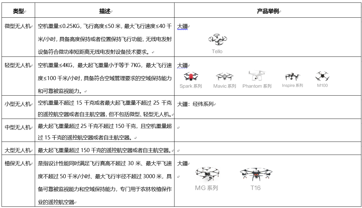 (微、輕、小、中、大型無(wú)人機(jī)分類圖 )