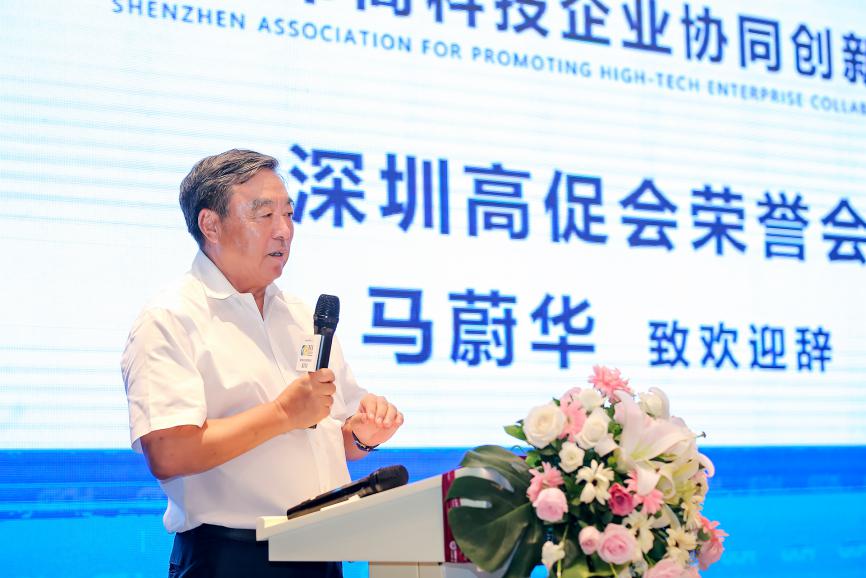 高促會(huì)會(huì)長靳曉明因北京疫情原因無法來到現(xiàn)場,由高促會(huì)高級顧問邢繼俊代表靳會(huì)長接受由榮譽(yù)會(huì)長馬蔚華和福田區(qū)科技創(chuàng)新局局長張忠暉頒發(fā)的高促會(huì)會(huì)長牌匾。