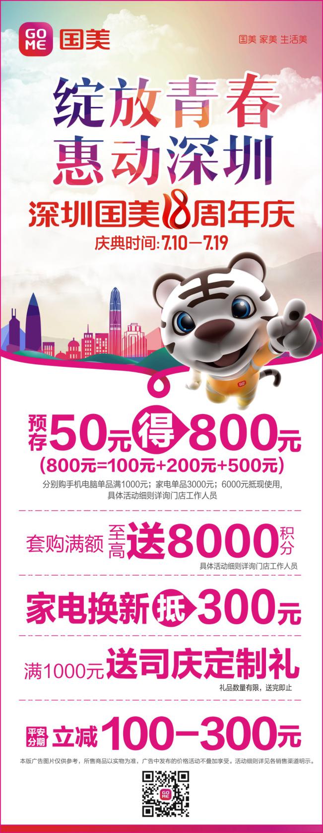 時(shí)間是最好的見證者,萬分榮幸我們和辛勤的深圳建設(shè)者一起見證了這座偉大城市的發(fā)展與變遷,深圳無疑是充滿創(chuàng)造力和奇跡的城市,時(shí)間就是金錢,效率就是生命是這座城市的座右銘。為感謝粉絲們一直以來對(duì)國美的支持與厚愛,值此18周年大慶之際,深圳國美于7月10日-19日舉辦了一場“綻放青春,惠動(dòng)鵬城”18周年慶活動(dòng)!