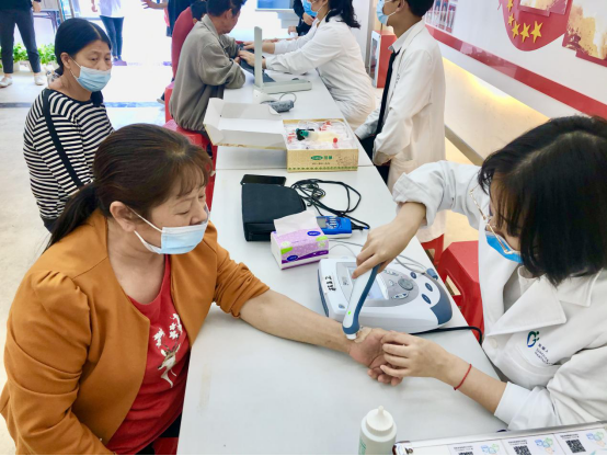 活動(dòng)現(xiàn)場(chǎng),社區(qū)居民聞?dòng)嵍?,向醫(yī)務(wù)工作人員咨詢各種保健知識(shí)和健康問(wèn)題,通過(guò)測(cè)量血壓、中醫(yī)學(xué)全息四診(望、聞、問(wèn)、切)等形式。