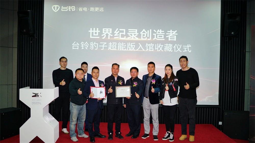 深圳市工業(yè)展覽館副館長(zhǎng)潘文峰,深圳電動(dòng)車(chē)產(chǎn)業(yè)促進(jìn)委員會(huì)執(zhí)行會(huì)長(zhǎng)楊華,臺(tái)鈴集團(tuán)董事長(zhǎng)孫木鉗、臺(tái)鈴集團(tuán)總裁助理兼公關(guān)總監(jiān)胡東文等嘉賓齊聚深圳市工業(yè)展覽館,參加了以“科技臺(tái)鈴超能領(lǐng)跑”為主題的世界紀(jì)錄創(chuàng)造者——臺(tái)鈴豹子超能版入館收藏儀式,共同見(jiàn)證了這一榮光時(shí)刻。