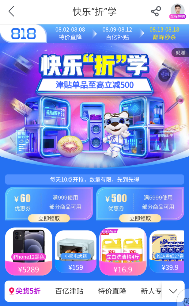 以818大促為例,8月12日至18日期間,“真快樂(lè)”以“特價(jià)直降”“百億津貼”和“巔峰秒殺”三重活動(dòng)讓利消費(fèi)者,一重更比一重優(yōu)惠。活動(dòng)福利覆蓋食品酒水、服飾鞋包、家居家裝、日用百貨、母嬰玩具、美妝個(gè)護(hù)、家用電器等全品類品質(zhì)好物。與此同時(shí),消費(fèi)者不僅可以享受“真快樂(lè)”提供的折扣優(yōu)惠,還可以通過(guò)國(guó)美“折上折A PP”領(lǐng)券,再次享受優(yōu)惠,實(shí)現(xiàn)折上再折,折上再減。無(wú)需費(fèi)心拼單、湊單,一鍵領(lǐng)取優(yōu)惠券,折扣即可到手。