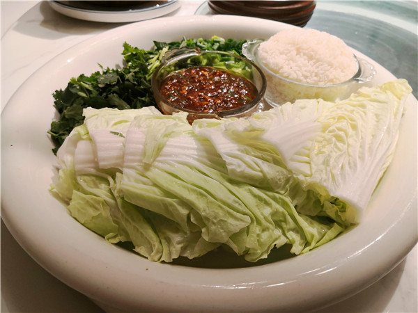 尤其扎眼的,正對大門的明廚亮灶上的幾塊牌匾,一下子就勾起人的食欲:老式熏豬手、手工燒老雞、烏蘇里江鰉魚、興凱湖大白魚、查干湖胖頭魚、火夫灶羊腿。這些都是地道的東北味啊!據(jù)介紹,老板湯長明是黑龍江“龍菜”系傳承領(lǐng)軍人物,祖孫四代傳承東北菜廚藝,現(xiàn)在關(guān)東大院餐飲集團董事長。當(dāng)然,許多大家耳熟能詳?shù)拇蟊姴艘矐?yīng)有盡有,如:殺豬菜、小雞燉蘑菇、得莫利燉魚、大鵝燉寬粉、黑皮肘子、酸菜粉、地三鮮、東北鹵水點豆腐、金湯遼參、黃魚燒土豆、紅燒肉黃金勾......看得人口水直冒。加之,整個門店的布局也十分特別,一樓明廚亮灶之外,主要是大堂散座,周邊還有不少的書籍、酒架;二樓主要是包間,簡潔明亮。可以說,在此可以感受到一股濃濃的關(guān)東風(fēng)情。