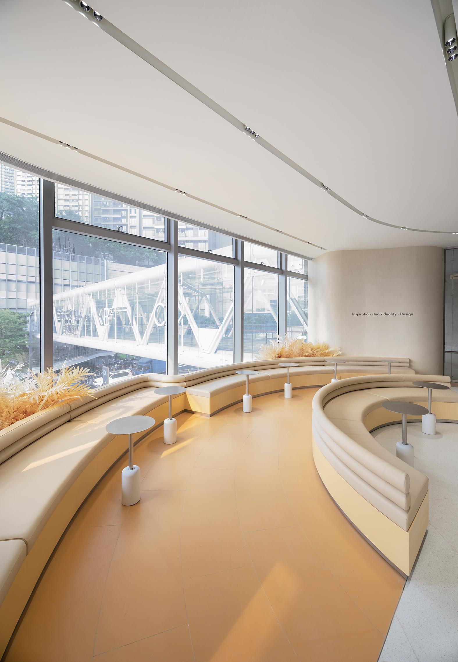 走進(jìn)喜茶深圳壹方天地C區(qū)店,通透的全落地玻璃外立面,讓藍(lán)天白云似乎觸手可及;渾然一體的圓潤(rùn)吧臺(tái),讓整個(gè)空間更為純粹;橙白漸變的門店主色調(diào),為深圳增添了一份溫柔的秋意。門店整體布局采用了圍合式布局,圍繞中心的水吧,從外立面到客區(qū)桌椅的布置都以圓弧形態(tài)進(jìn)行圍合,隨性且愜意。