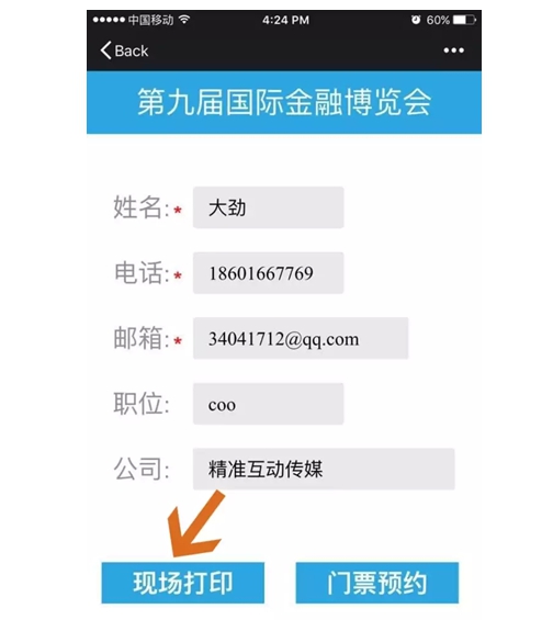 4、提示【輸入打印碼】是在現(xiàn)場(chǎng)門票終端取票時(shí)使用。