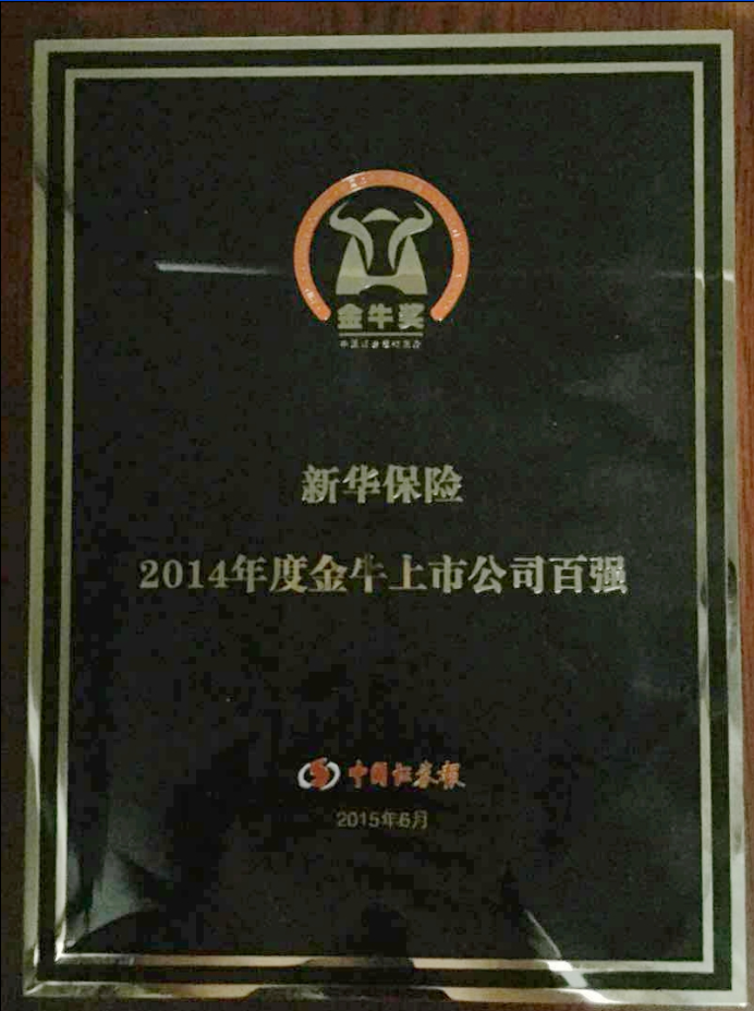 ?2015年6月,中國證券報(bào)第17屆(2014年度)上市公司金牛獎(jiǎng)隆重揭曉,新華保險(xiǎn)榮獲“金牛上市公司百強(qiáng)”獎(jiǎng)項(xiàng),這代表了資本市場以及社會(huì)各界對新華保險(xiǎn)在公司治理、信息披露、投資者關(guān)系等方面工作的高度認(rèn)可。