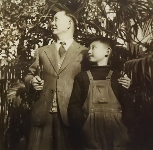 資料圖:梅蘭芳先生與兒時的梅葆玖。梅瑋供圖。