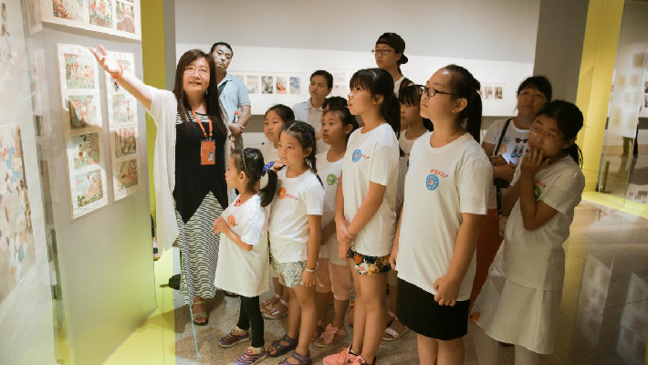 開營當(dāng)天,孩子們還參觀了中國美術(shù)館《故事繪》連環(huán)畫展,中國美術(shù)館志愿者教員為環(huán)衛(wèi)子女介紹了中國美術(shù)館的歷史以及文明觀展禮儀。