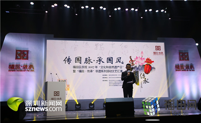 6月10日下午,福田區(qū)2017年“文化和自然遺產(chǎn)日”暨“福田 傳承”非遺系列活動(dòng)文藝匯演福田文化館星空劇場(chǎng)舉行。