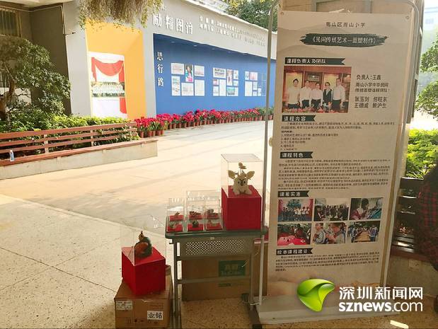 市中小學(xué)傳統(tǒng)文化類(lèi)“好課程”負(fù)責(zé)人代表南山小學(xué)帶來(lái)民間傳統(tǒng)工藝——面塑的設(shè)展示區(qū)。