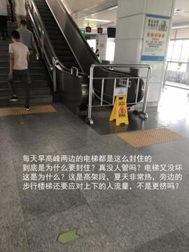 在7月2日的這條投訴中,有市民還指出了電梯停運(yùn)時(shí)間的不合理,稱木棉灣站的地鐵每逢工作日高峰期就“暫停使用”,到了平峰期就正常運(yùn)行。這也引起了其他一些乘客的質(zhì)疑。家住木棉灣站附近的李先生說:“非高峰時(shí)段電梯就能用,說明電梯本身沒問題,那為什么不開放給人多的時(shí)候用呢?”市民張先生則認(rèn)為,地鐵方面可能是為了降低維護(hù)成本,“怕人多踩壞了,要花錢花時(shí)間修唄”。但也有市民猜測電梯停運(yùn)或有安全方面的考慮。“畢竟不會(huì)無緣無故就停了吧,可能是考慮到高峰客流量多,所以關(guān)掉不用的?!倍排勘硎荆梢越邮芤?yàn)榘踩珕栴}而采取的停運(yùn)措施,“走走樓梯也沒有什么。