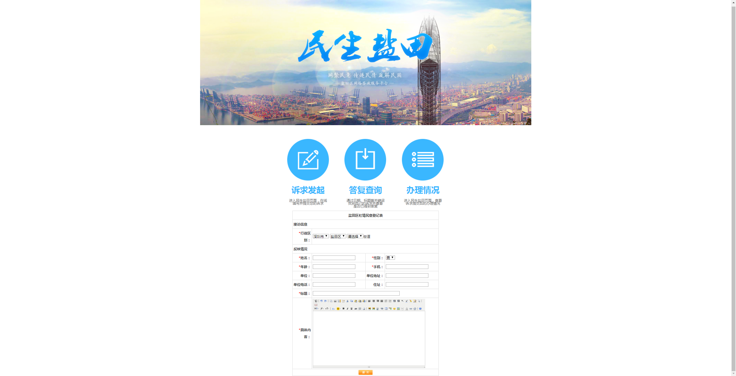(1)進入民生鹽田頁面,在線填寫并提交您的訴求
