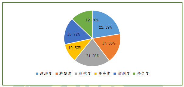 圖6.關(guān)注氣墊粉底使用性能指標(biāo)的消費(fèi)者人數(shù)占比