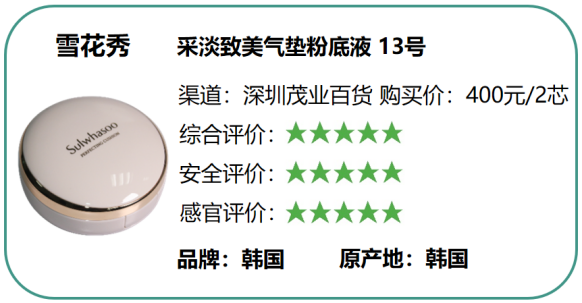 深圳新聞網(wǎng)訊 為給消費(fèi)者提供科學(xué)合理的消費(fèi)指引,深圳市消費(fèi)者委員會聯(lián)合福田區(qū)消費(fèi)者委員會、寶安區(qū)消費(fèi)者委員會委托深圳市品質(zhì)消費(fèi)研究院開展氣墊粉底比較試驗(yàn)。本次比較試驗(yàn)委托第三方權(quán)威檢測機(jī)構(gòu)進(jìn)行檢測,對國內(nèi)外8個(gè)知名品牌氣墊粉底的安全性和感官性進(jìn)行了比拼。其中進(jìn)口品牌5個(gè),國產(chǎn)品牌3個(gè)。工作人員模擬普通消費(fèi)者身份在深圳各大商場(天虹商場、華潤萬家、茂業(yè)百貨和太陽百貨)進(jìn)行匿名購買。