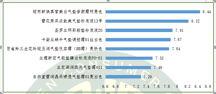 表7.8款氣墊粉底測試結(jié)果總表