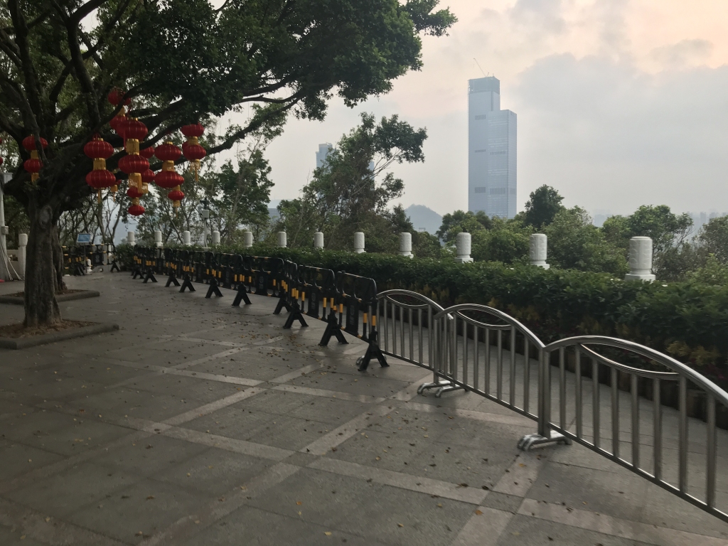 10月9日,有市民發(fā)帖稱,蓮花山公園山頂廣場上以及廣場四周的漢白玉欄桿前,都被人為設(shè)置了一圈“鐵馬”。由于蓮花山山頂是深圳著名的旅游景點,該市民認為設(shè)置圍欄會使很多游客無法近距離合影。與此同時,市民還反映如要靠近廣場四周的漢白玉欄桿前拍照,就會被公園保安阻攔。保安稱要靠近欄桿拍照,則必須到管理處開證明,其質(zhì)疑該項規(guī)定不合理。