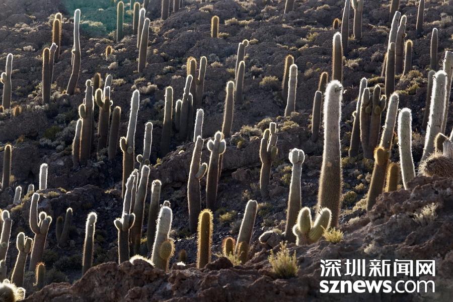 深圳新聞網(wǎng)訊 烏尤尼鹽沼中,有一個(gè)孤立的小山頭,猶如瀚海中的小島。島上長滿巨大的仙人柱,據(jù)說有的已經(jīng)生長了上千年。這種形狀各異、耐鹽堿、耐干旱的熱帶植物豐富了鹽沼的風(fēng)光,構(gòu)成絕無僅有的世界奇觀。 李仁奇 攝