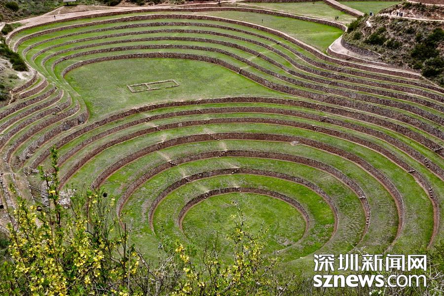 在廣袤的山丘間,呈現(xiàn)眾多頗似環(huán)形階梯劇場(chǎng)的下沉式梯田,其深度從百米到160米不等。一塊梯田的十多層梯級(jí)環(huán)環(huán)相連、層級(jí)勻稱的圓形梯田好像外星人的繪畫(huà)杰作。李仁奇攝