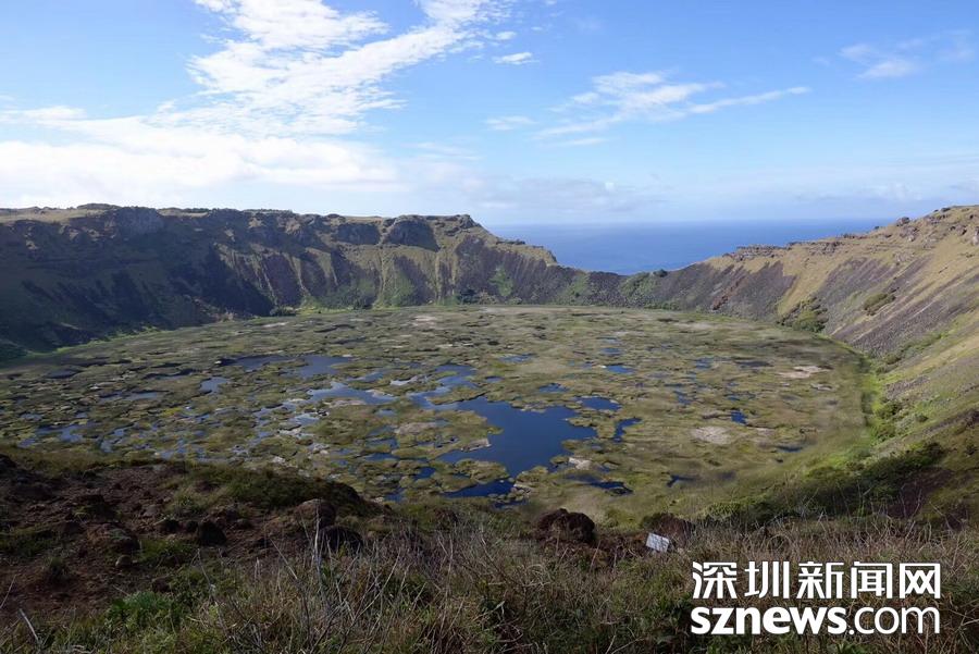 其中全島最高點(diǎn)的火山口距海岸線(xiàn)不足百米,形狀最為完整典型。底部的積水形成數(shù)以百計(jì)的深潭,據(jù)說(shuō)從火山口邊沿至水面以下的底部深達(dá)2000米左右。李仁奇   攝