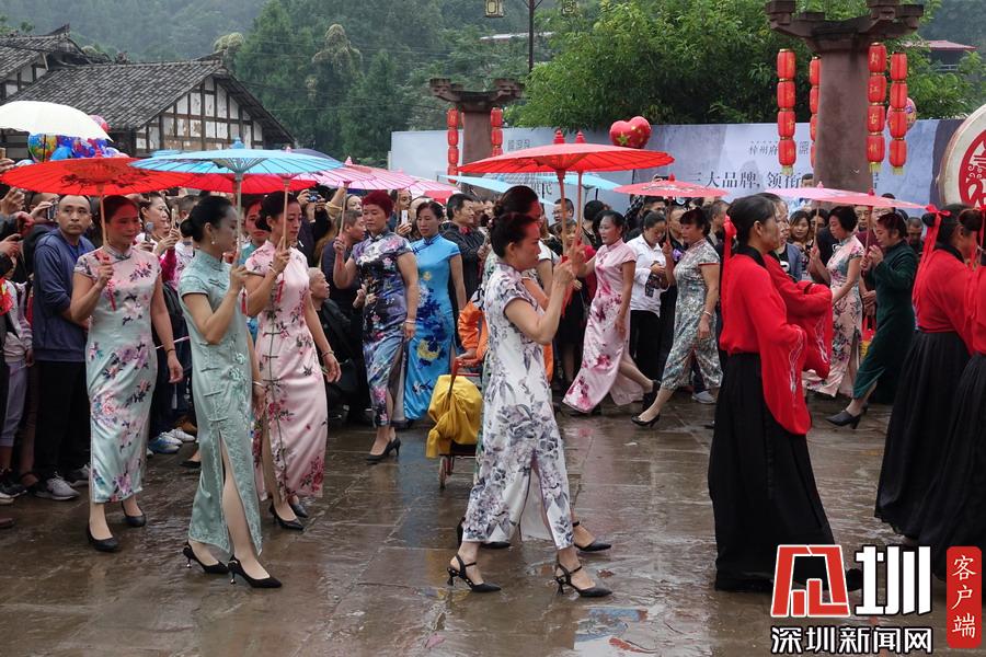 郪江古鎮(zhèn)古典風(fēng)格的迎賓儀式和民俗風(fēng)情展示。李仁奇攝