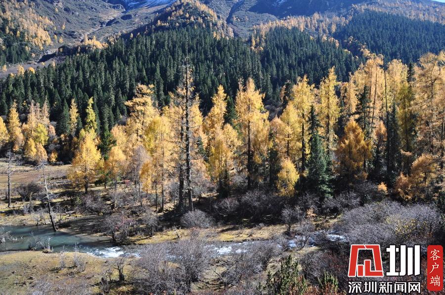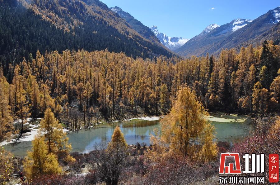 溝里有大片的落葉松、杜鵑和云杉林,雪山、海子、濕地、河流等景觀應有盡有,唯獨沒有公路,只能沿木棧道徒步游覽。李仁奇攝