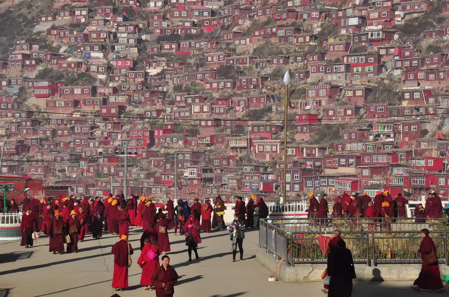 震撼!世界最大佛學院建在海拔4000米的山谷 密密麻麻的僧舍連綿數公里