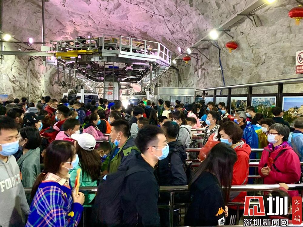 華山是道教主流全真派圣地,為“第四洞天”,也是中國民間廣泛崇奉的神祇,即西岳華山君神。排隊(duì)等待參觀的游客。李仁奇攝。