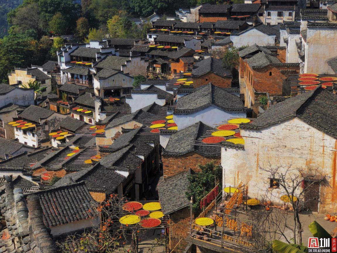 見圳客戶端·深圳新聞網(wǎng)2020年11月25日訊 江西婺源縣篁嶺村獨(dú)特的“曬秋”農(nóng)俗景觀。篁嶺村位于江西省上饒市婺源縣東北部,是著名的“曬秋”文化起源地,也是一座距今近六百年歷史的徽州古村。每當(dāng)日出山頭,數(shù)百棟徽派古民居在百米落差的坡面錯(cuò)落排布,整個(gè)山間村落徽式民居土磚外墻與曬架上五彩繽紛豐收成果組合,繪就出“曬秋”農(nóng)俗特色景觀。