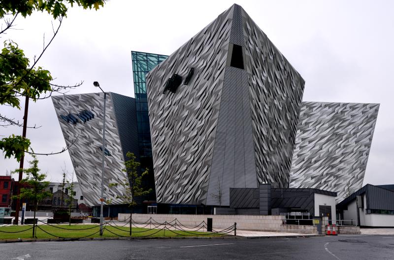 2015年2月3日,在泰坦尼克號(hào)沉沒(méi)100周年紀(jì)念日之際,一座造型獨(dú)特的現(xiàn)代化博物館在原來(lái)建造泰坦尼克號(hào)的船塢上落成,成為貝爾法斯特的新地標(biāo)。李仁奇 攝