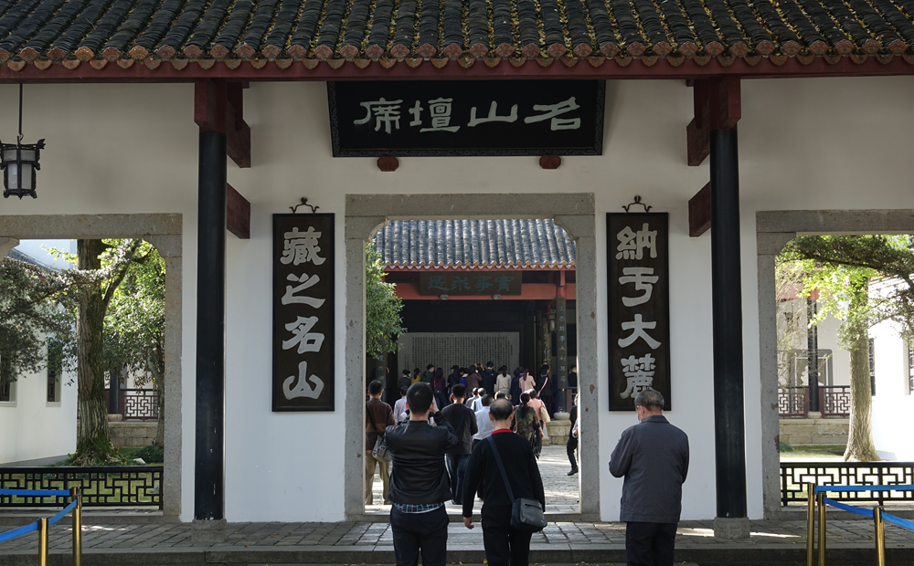 書院二門,門額正上方懸有"名山壇席"匾,兩旁有對(duì)聯(lián)"納于大麓;藏之名山",上聯(lián)出自《尚書·舜典》,下聯(lián)出自《史記·太史公自序》。李仁奇 攝