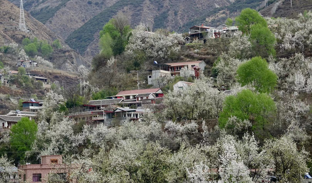 藏式民居與雪花梨花桃花相互掩映,美若仙境。李仁奇 攝
