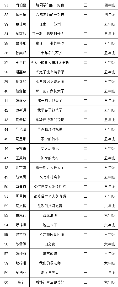 自2021年1月,活動(dòng)征稿啟動(dòng)以來,獲得了深圳市廣大中小學(xué)生、教師、文學(xué)愛好者的熱烈響應(yīng)積極參與,吸引了深圳百余所學(xué)校的上萬人關(guān)注報(bào)名?,F(xiàn)公布深圳市光明區(qū)鳳凰學(xué)校專場晉級復(fù)賽名單如下: