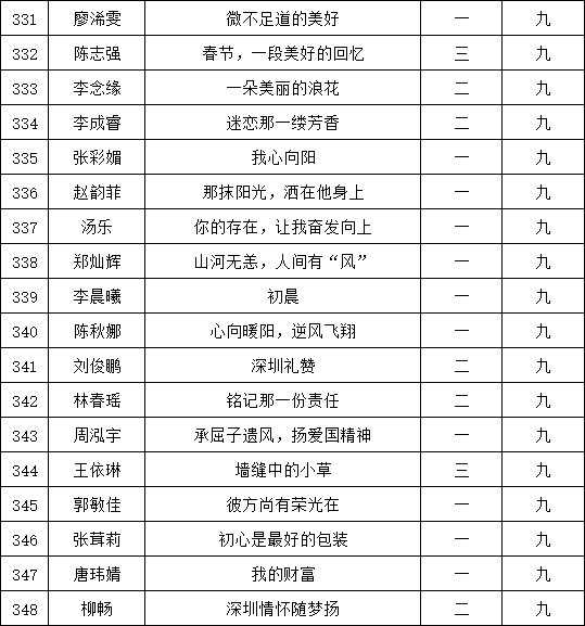 自2021年1月,活動征稿啟動以來,獲得了深圳市廣大中小學(xué)生、教師、文學(xué)愛好者的熱烈響應(yīng)積極參與,吸引了深圳百余所學(xué)校的上萬人關(guān)注報(bào)名?,F(xiàn)公布福永中學(xué)晉級復(fù)賽名單如下: