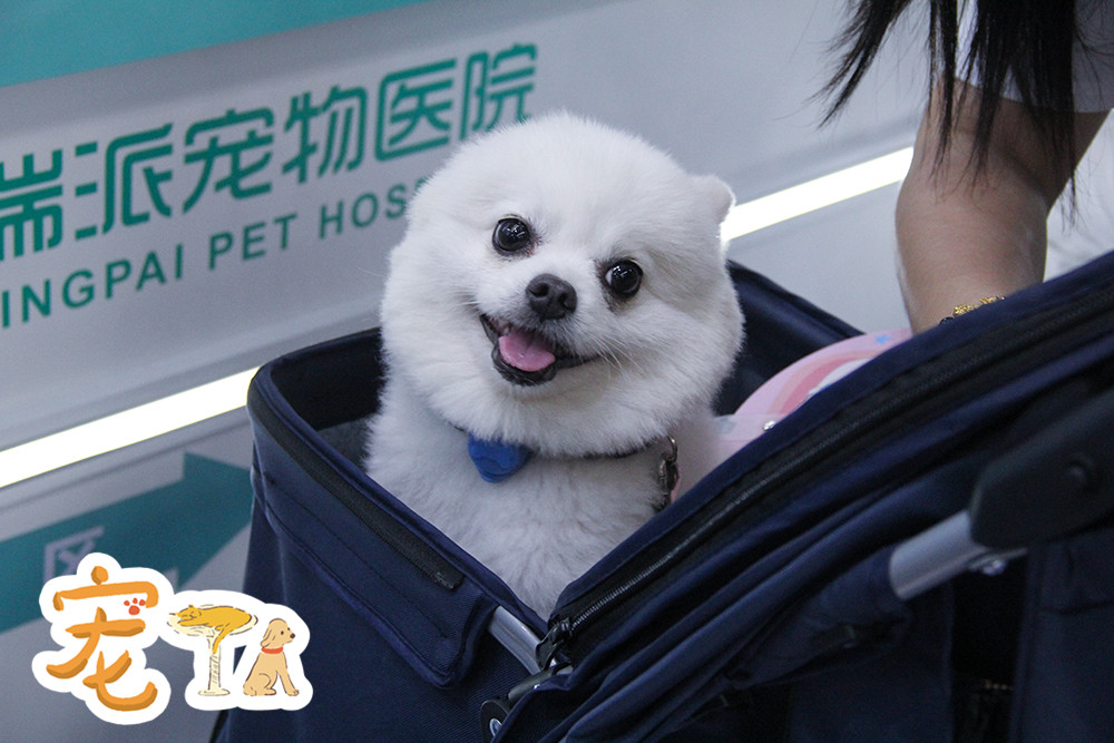 現(xiàn)場(chǎng)有很多主人使用推車(chē)帶著自家狗狗逛展。