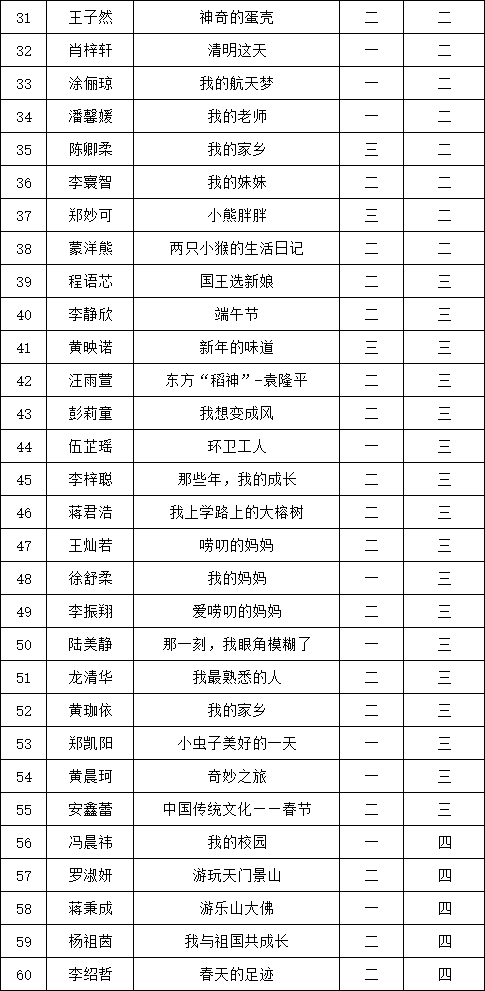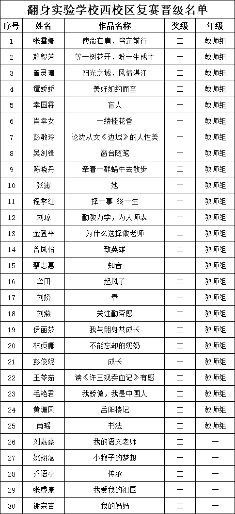 自2021年1月,活動征稿啟動以來,獲得了深圳市廣大中小學(xué)生、教師、文學(xué)愛好者的熱烈響應(yīng)積極參與,吸引了深圳百余所學(xué)校的上萬人關(guān)注報名。現(xiàn)公布翻身實驗學(xué)校西校區(qū)晉級復(fù)賽名單如下: