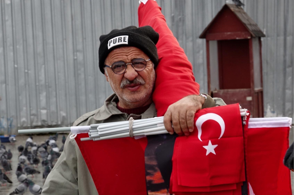 出售國旗的小販。李仁奇 攝