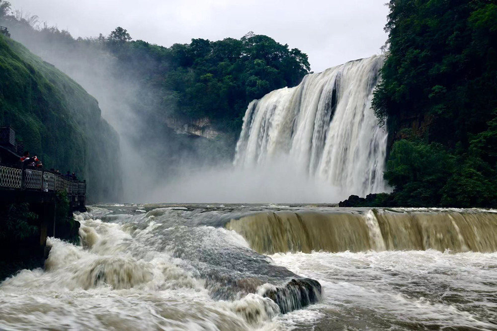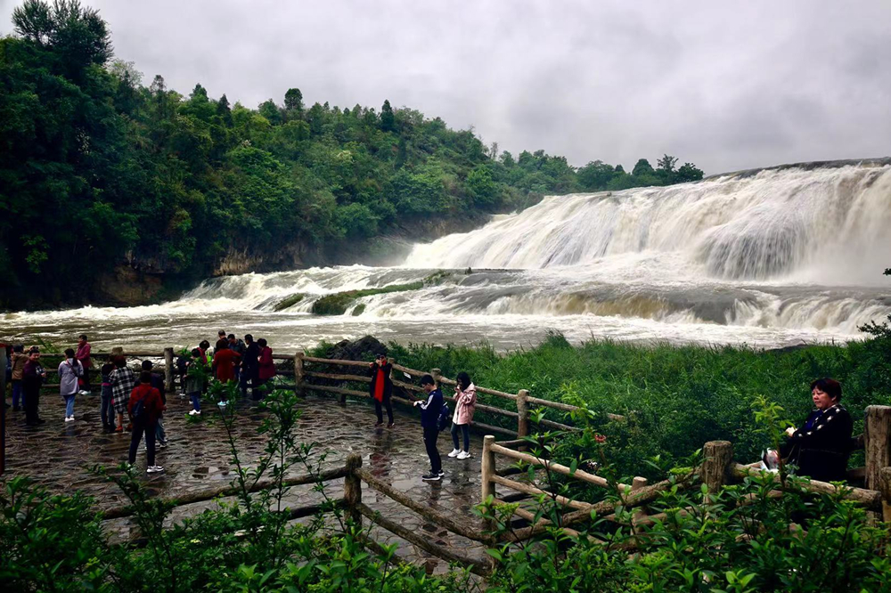 黃果樹(shù)瀑布的游客數(shù)以萬(wàn)計(jì),但是能夠在豐水期觀賞到特別壯觀景象的游客卻是少數(shù)。李仁奇 攝