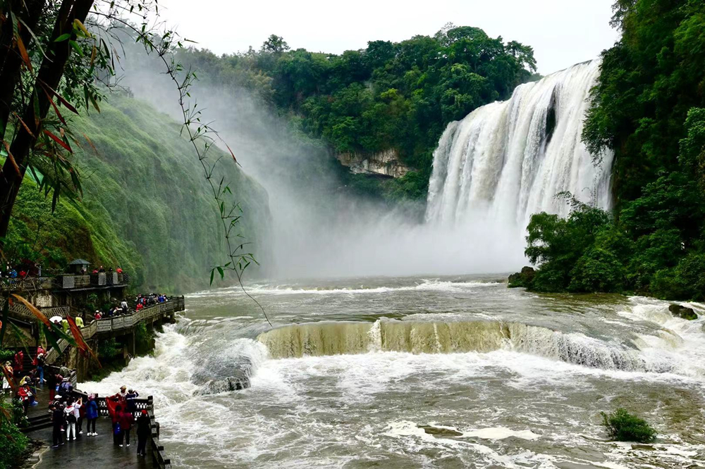 水大時(shí),瀑布濺珠飛灑到100多米高的黃果樹(shù)街上,兩三里外能聽(tīng)到雷鳴般的響聲。李仁奇 攝