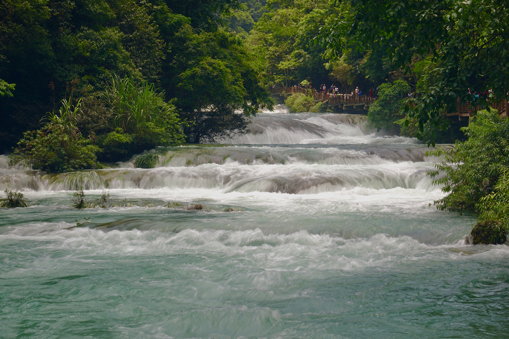 景區(qū)主要有拉雅瀑布、68級跌水瀑布、石上森林、野豬林、水上森林、天鐘洞、臥龍?zhí)?、鴛鴦湖等21個(gè)景點(diǎn),享有“超級盆景”之譽(yù)。李仁奇 攝