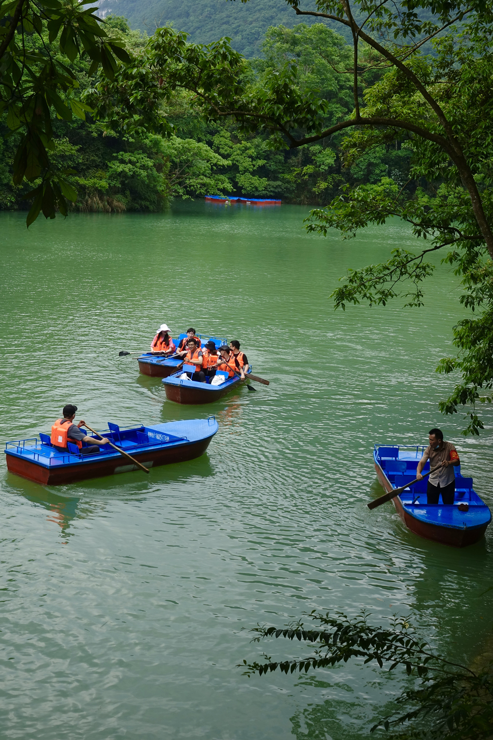 鴛鴦湖是由兩個(gè)大湖和四個(gè)小湖串聯(lián)起來的水網(wǎng),屬于高原喀斯特湖泊。泛舟湖中,感覺心靈都被洗凈了。李仁奇 攝