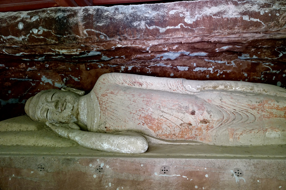 臥佛:這是我國現(xiàn)存唯一一尊北魏時期的臥佛,具有重要的歷史研究價值。和別的臥佛不一樣的地方在于,這尊臥佛著木屐。李仁奇 攝