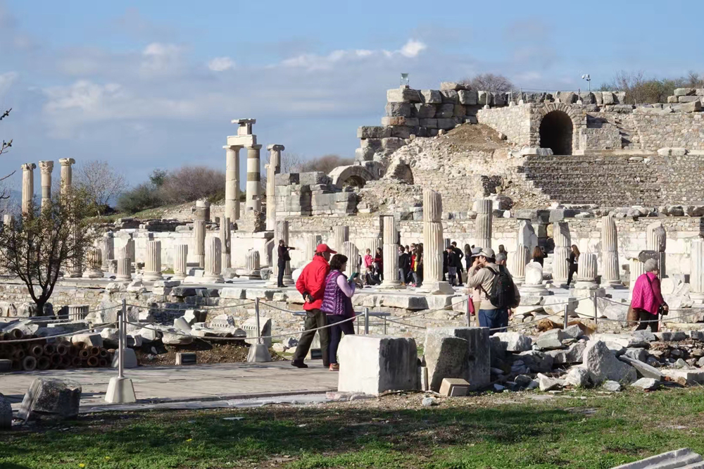立柱背后是市政廳遺址。經(jīng)過幾百年的地貌變遷,以弗所的入??跐u漸被淤泥填塞,它賴以生存的海洋貿易遂告終結,加上地中海沿岸頻發(fā)的地震,以弗所難逃被遺棄的噩運,這座新約《圣經(jīng)》中出現(xiàn)過的城市,最終淪為一片大理石廢墟。李仁奇 攝