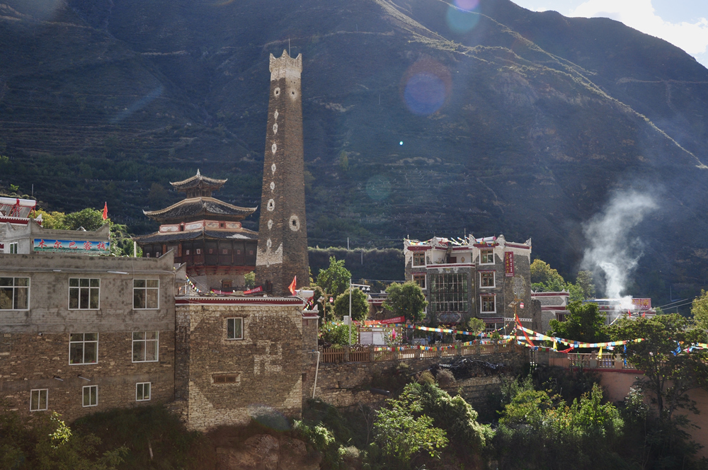 古碉為片石或石塊夾泥砌成,棱角筆直,墻面光滑,下寬上窄,一般高20余米,最高達50米,內(nèi)建樓層十余層至二十余層,每層可容納10余人。李仁奇 攝