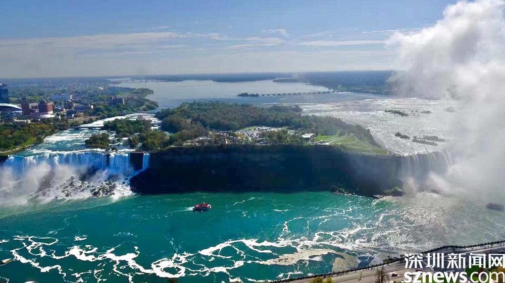 在瀑布兩側(cè),有兩座都叫尼亞加拉瀑布城的姐妹城市,一個(gè)隸屬于加拿大的安大略省,另一個(gè)隸屬于美國(guó)的紐約州,兩城隔河相望。李仁奇 攝