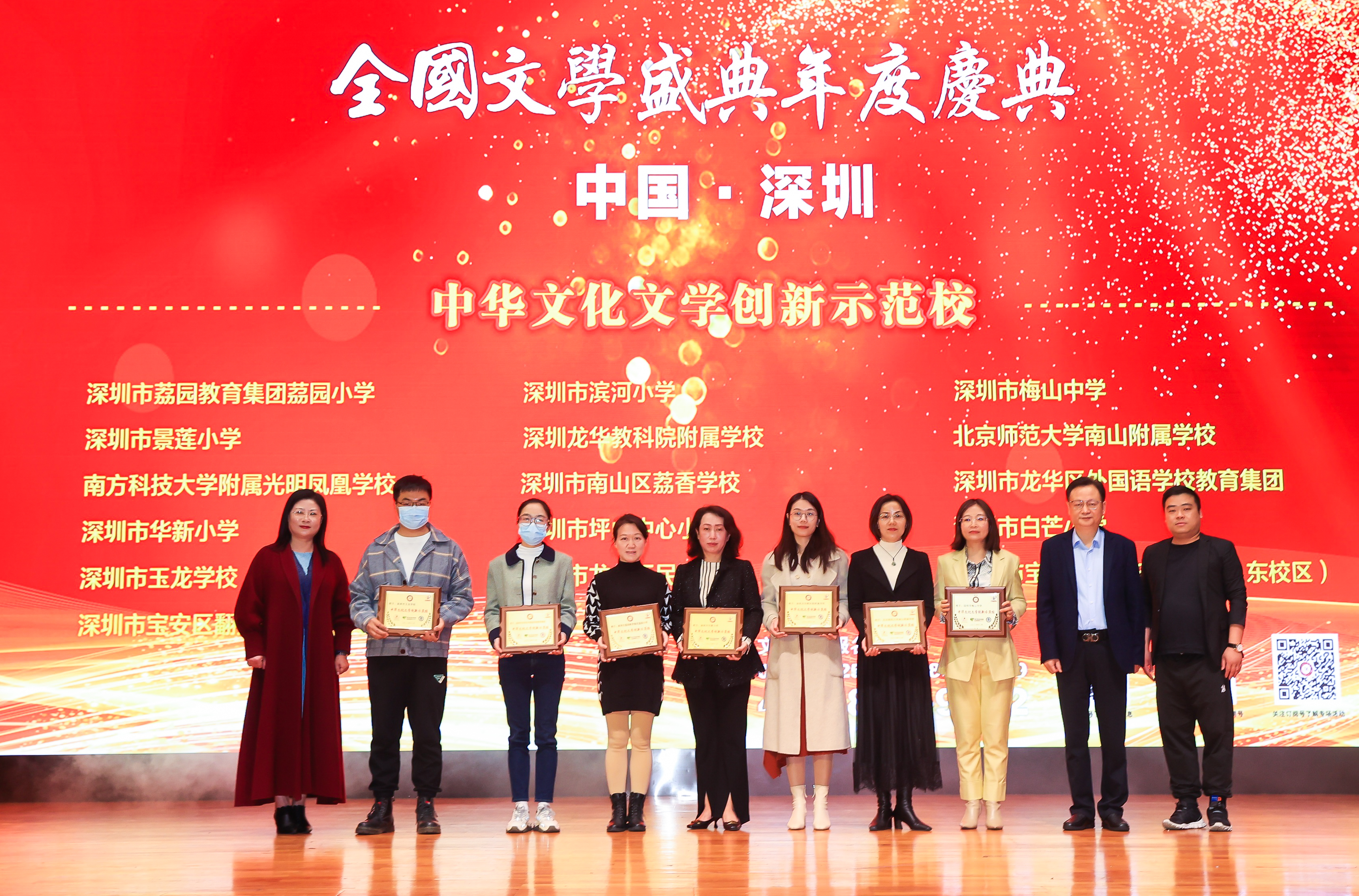 中華文化創(chuàng)新文學(xué)示范校獲獎(jiǎng)代表合影