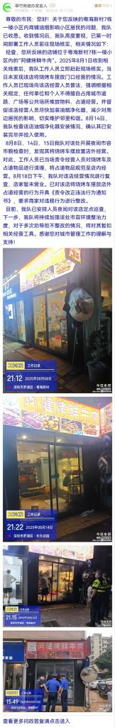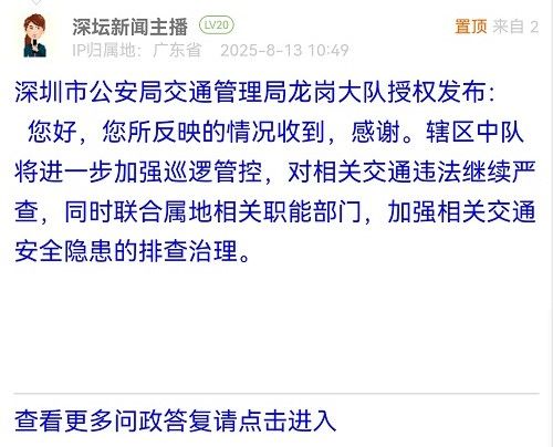 據(jù)統(tǒng)計,2025年8月11日-2025年8月17日,網(wǎng)友在深圳論壇發(fā)布問政類帖文共31篇,得到相關(guān)單位正式回應(yīng)的帖文數(shù)為31篇,本期簡報回應(yīng)速度最快的單位:市市場監(jiān)督管理局光明監(jiān)管局、福田交通局、龍華區(qū)民治街道辦事處、南山區(qū)南頭街道辦事處、市公安局交通管理局龍崗大隊(duì)、龍崗區(qū)衛(wèi)生健康局、南山區(qū)城市管理和綜合執(zhí)法局、福田區(qū)梅林街道辦事處、羅湖區(qū)蓮塘街道辦事處。
