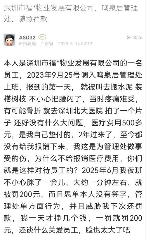 27. 帖文《深圳市福*物業(yè)發(fā)展有限公司,鳴泉居管理處,隨意罰款》