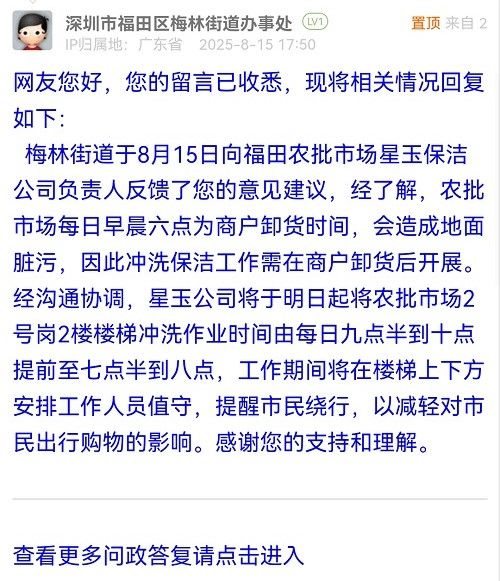 17. 帖文《呼吁福田農(nóng)批每日早晨沖水保潔方式進(jìn)行改進(jìn)》